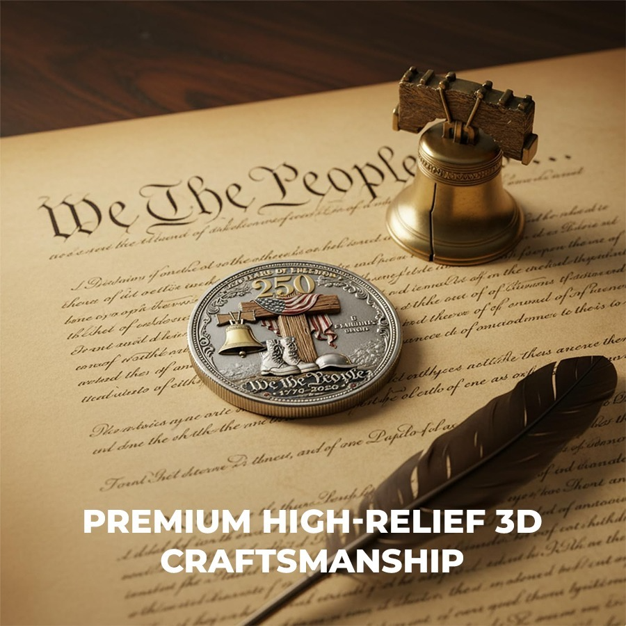 1) Celebrate Freedom: Display or carry this commemorative coin to proudly celebrate 250 Years of American Freedom (1776â2026) and honor the values of liberty, courage, and patriotism that shaped the nation.